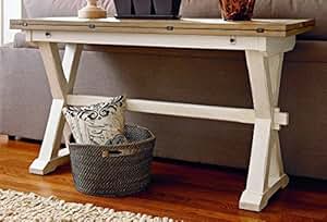 Martin Svensson Home Napa, Flip Top Sofa Console Table, Reclaimed Natural, Signature Design by Ashley Havalance Farmhouse Sofa Table, Flip Top Design for Additional Dining Space and Fixed Lower Shelf, Gray & White with Weathered Finish, SEI Furniture Driness Drop Leaf Convertible Console to Dining Table, Weathered Gray, White, Coast to Coast Imports Bar Harbor Fold Console Table, Blue, 64" W x 18" D x 31" H, (A40304), New Classic Furniture Bella Counter Sofa Table with 2 Stools & USB Chargers, Bisque, Pemberly Row Traditional Wood Sofa Table, Living Room, Entry Way, Hallway in White. Love the fact I can convert it to a table for the holidays and it's sturdy and able to do so. No typing for our Live Chat!